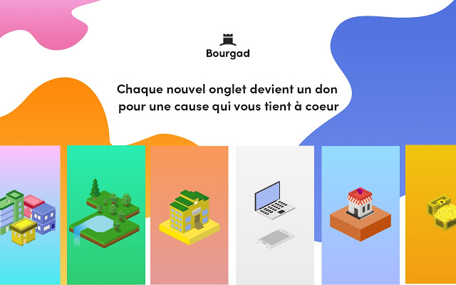 Avec Bourgad, chaque nouvel onglet devient une donation pour une cause qui vous tient à cœur. En naviguant comme vous le faites tous les jours sur votre navigateur vous pouvez grâce à cette extension construire une école, ou planter un arbre et bientôt vacciner un enfant ou encore offrir un repas.