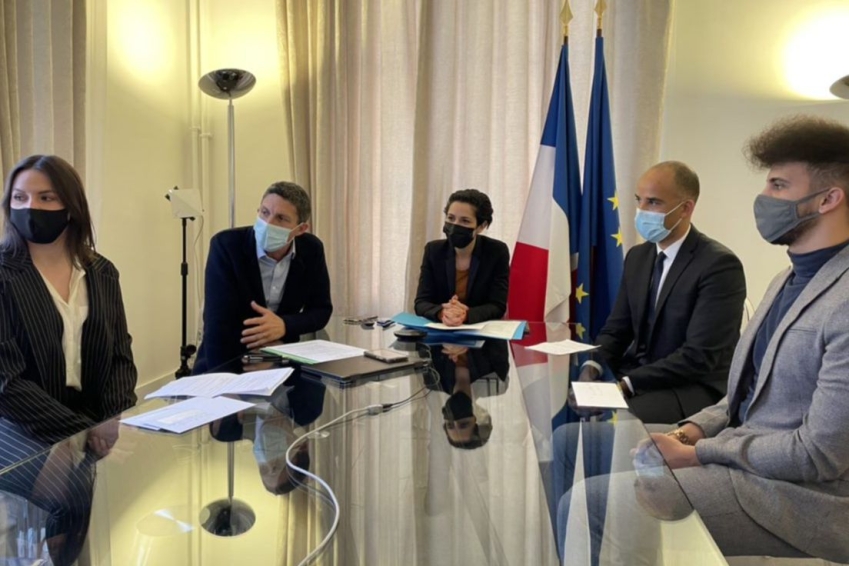 Sarah El Haïry, Secrétaire d'État auprès du ministre de l'Éducation nationale, de la Jeunesse et des Sports, chargée de la Jeunesse et de l'Engagement a reçu les étudiants ayant remporté le challenge et a remis le prix coup de cœur du jury.